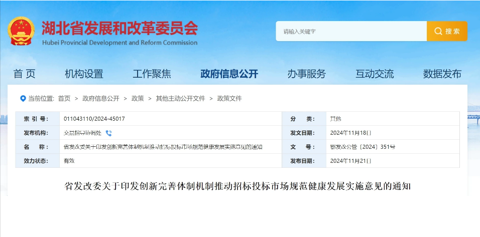 近日,湖北省發(fā)改委印發(fā)《關(guān)于創(chuàng)新完善體制機(jī)制推動(dòng)招標(biāo)投標(biāo)市場規(guī)范健康發(fā)展的實(shí)施意見》(鄂發(fā)改公管〔2024〕號(hào),以下簡稱《實(shí)施意見》),深化招標(biāo)投標(biāo)領(lǐng)域改革創(chuàng)新重點(diǎn)任務(wù)和具體...