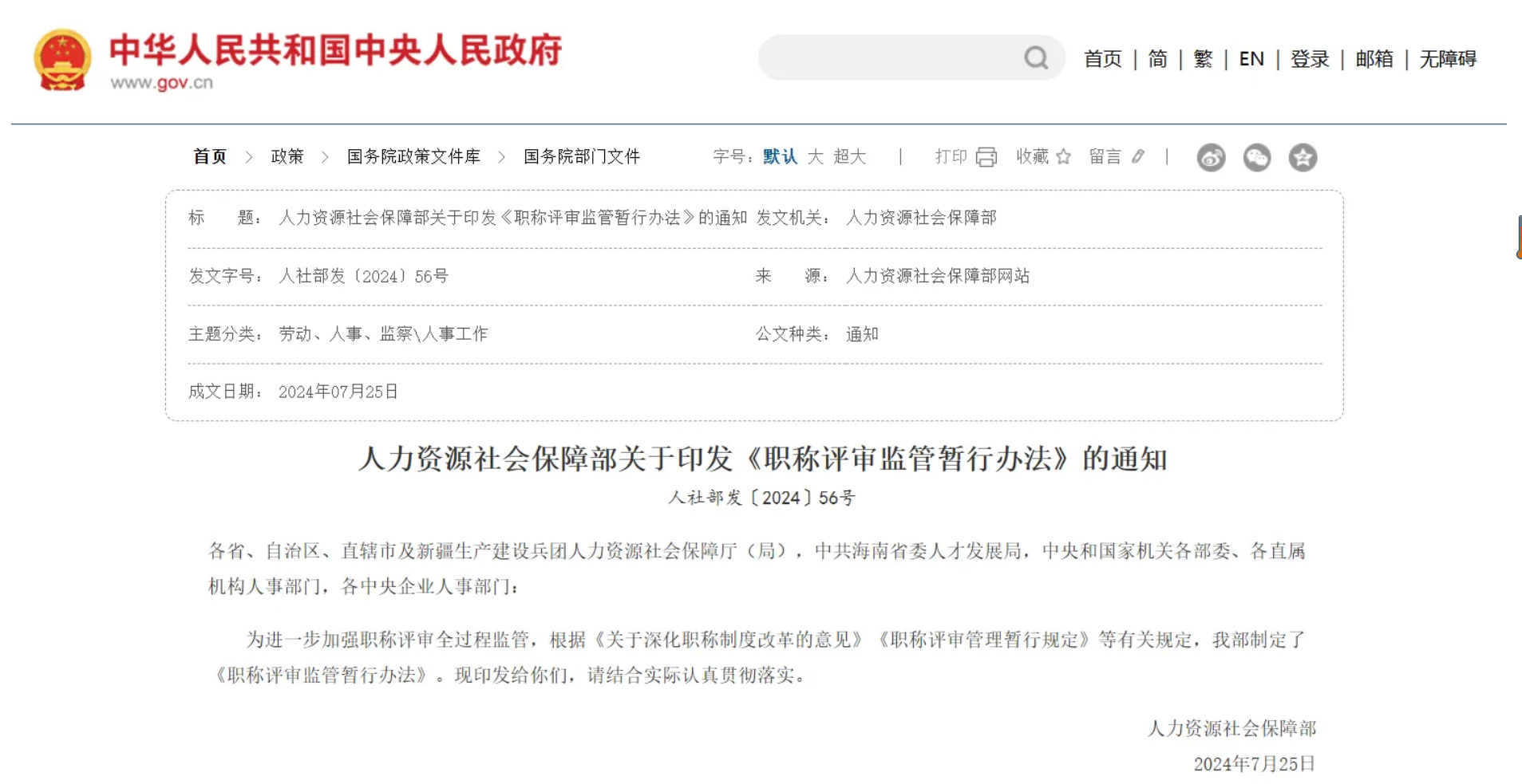 近日,人社部印發(fā)《職稱(chēng)評(píng)審監(jiān)管暫行辦法》(人社部發(fā)〔2024〕56號(hào))?! ?、《辦法》有什么重要意義? 近年來(lái),在“破四唯”、“立新標(biāo)”、放權(quán)松綁...