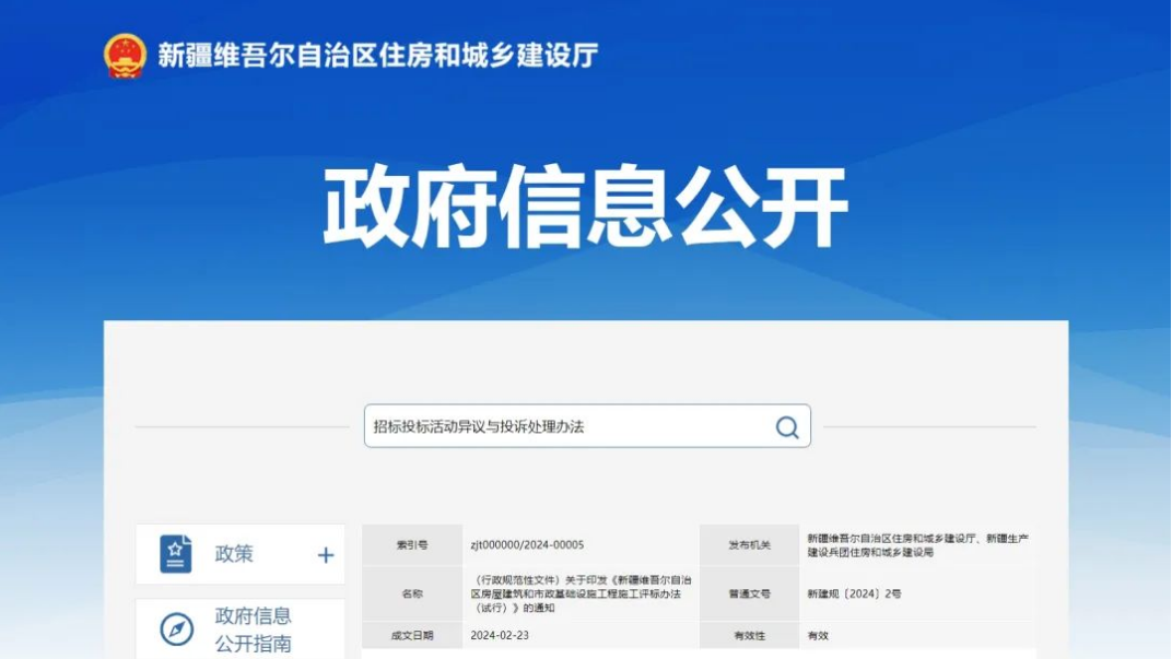 近日,新疆維吾爾自治區(qū)住房和城鄉(xiāng)建設(shè)廳、新疆生產(chǎn)建設(shè)兵團(tuán)住房和城鄉(xiāng)建設(shè)局印發(fā)《新疆維吾爾自治區(qū)房屋建筑和市政基礎(chǔ)設(shè)施工程施工評(píng)標(biāo)辦法(試行)》(以下簡(jiǎn)稱《施工評(píng)...