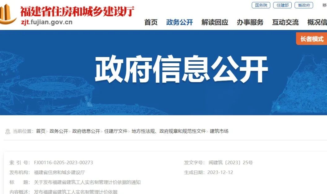 近日,福建省住建廳發(fā)布《關(guān)于發(fā)布福建省建筑工人實名制管理計價依據(jù)的通知》,自2024年1月1日起施行?! ?一)工程造價400萬元及以上的房屋建筑與裝飾工程(含安裝)、裝配...