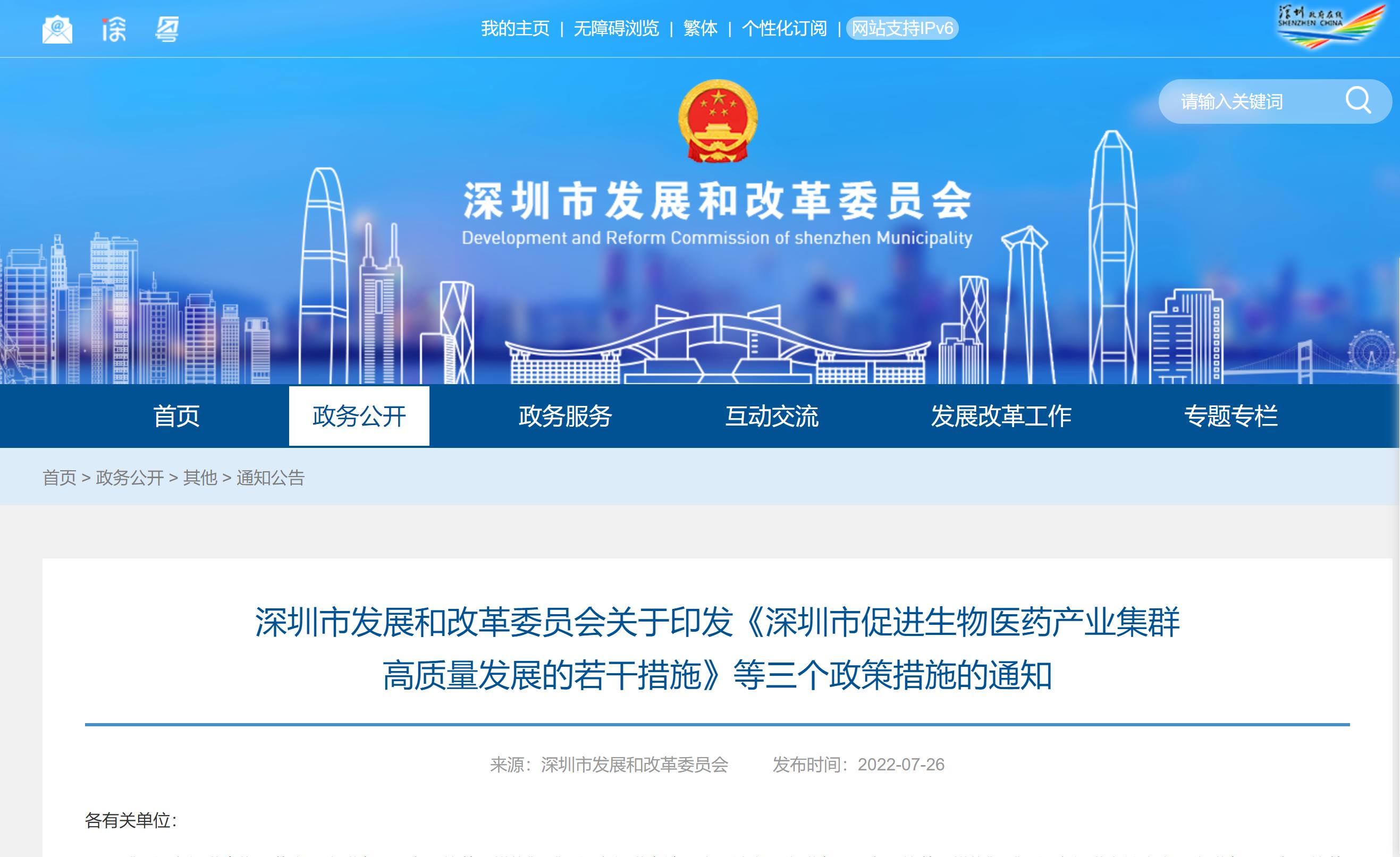 深圳發(fā)改委網(wǎng)站消息,深圳發(fā)改委印發(fā)《深圳市促進(jìn)生物醫(yī)藥產(chǎn)業(yè)集群高質(zhì)量發(fā)展的若干措施》提出,支持企業(yè)納入國家藥品集中帶量采購。鼓勵(lì)企業(yè)積極參加國家藥品集中帶量采購?fù)卣故袌?,中?biāo)品種按當(dāng)年采購總金額的3%予以資助...