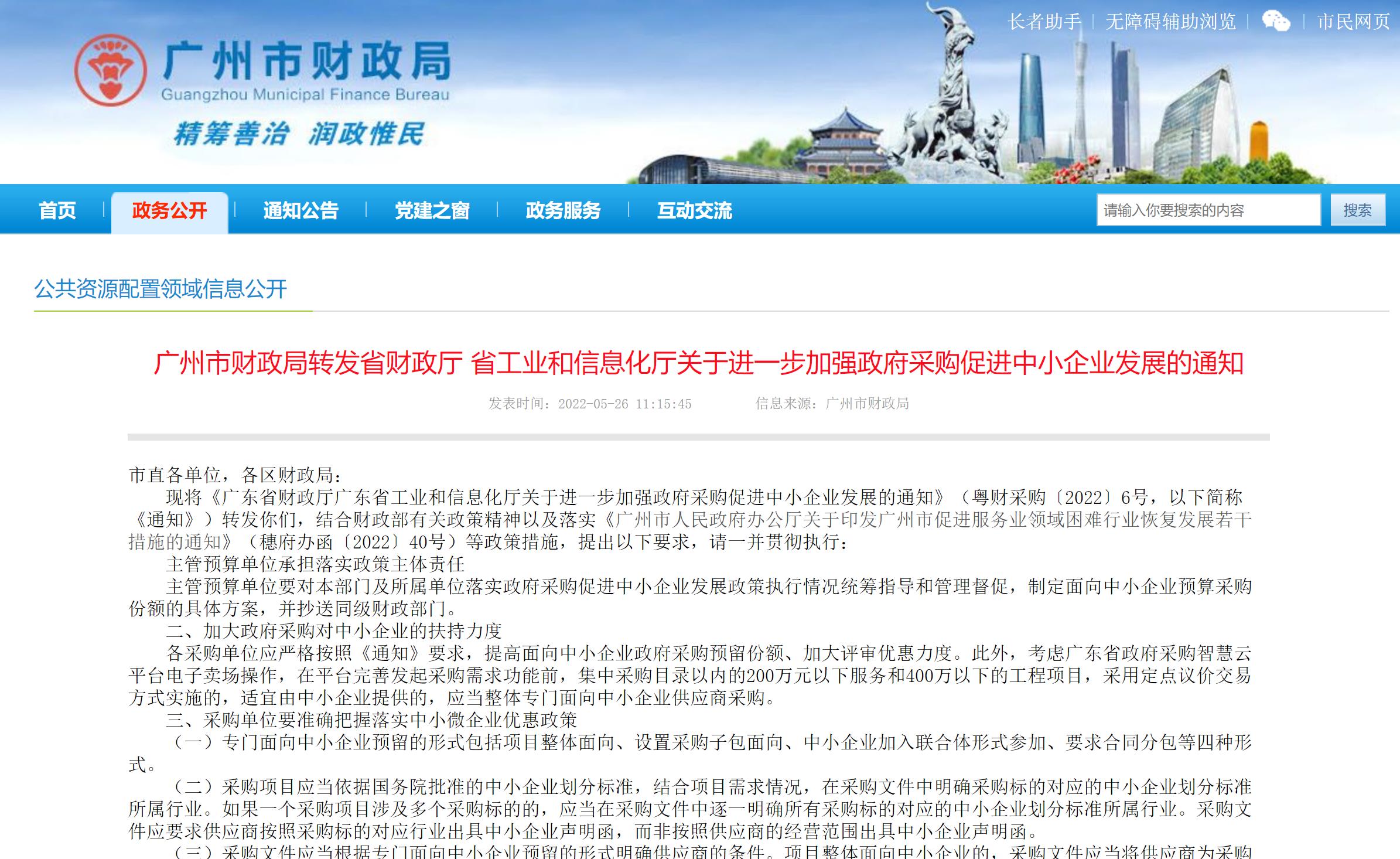日前,廣東省廣州市財(cái)政局印發(fā)《關(guān)于進(jìn)一步加強(qiáng)政府采購促進(jìn)中小企業(yè)發(fā)展的通知》明確,充分發(fā)揮政府采購政策功能,全方位細(xì)化政策規(guī)定,深入落實(shí)《政府采購促進(jìn)中小企業(yè)發(fā)展管理辦法》(以下簡稱《辦法》)的相關(guān)規(guī)定,加大政府...