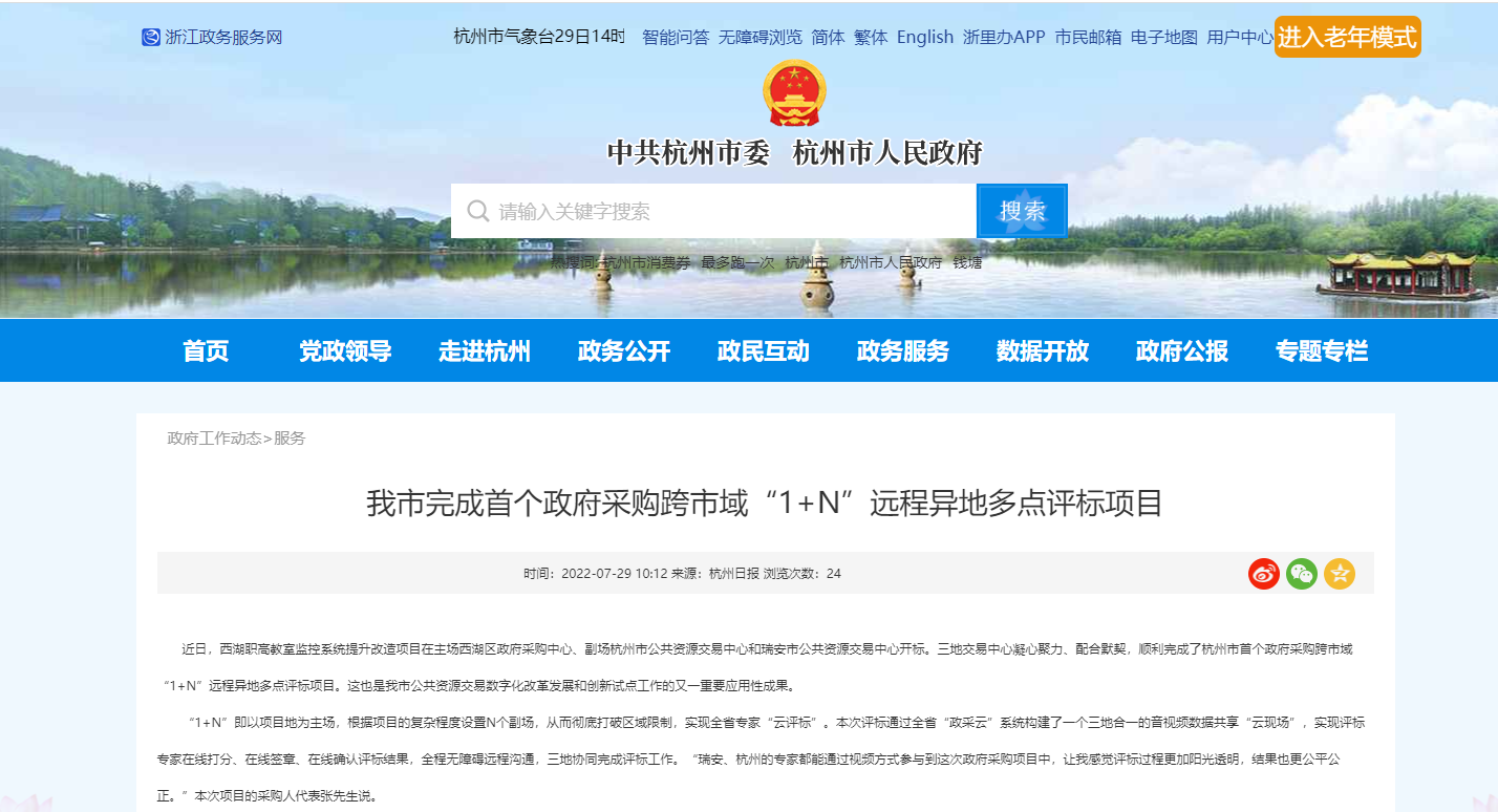 杭州丨完成首個(gè)政府采購跨市域'1+N...