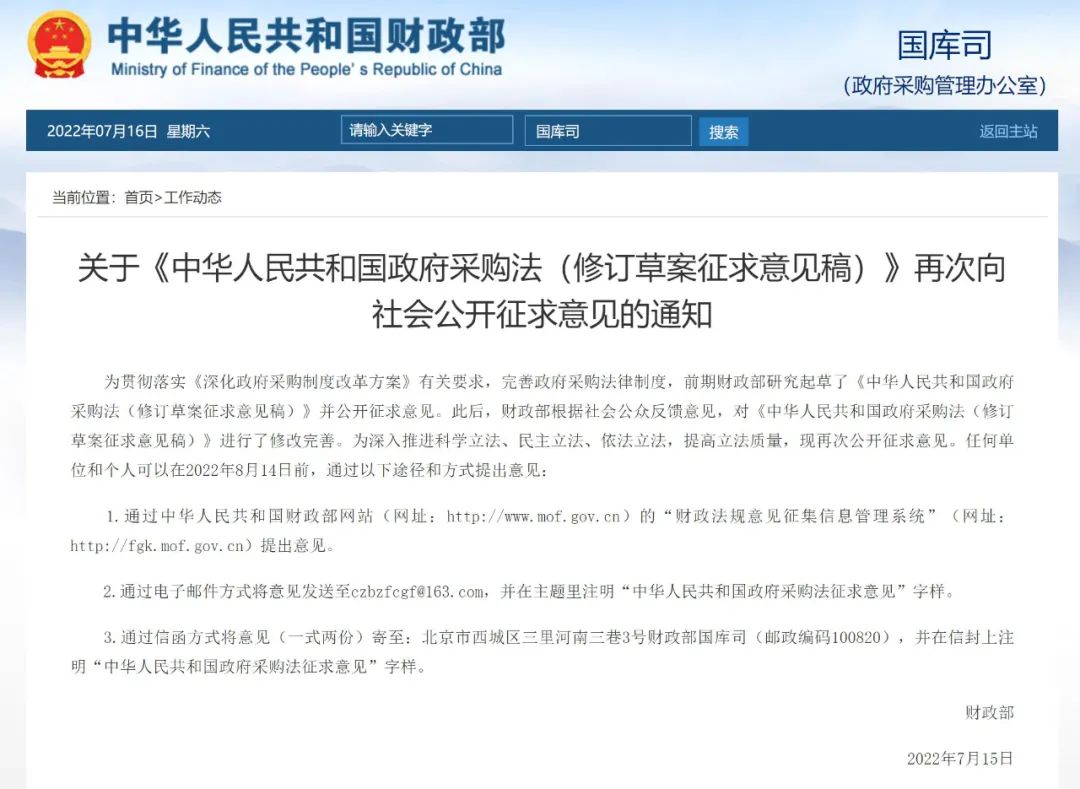 財(cái)政部 | 政府采購(gòu)法修訂再次征求...
