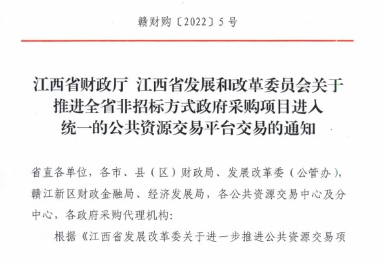 為進一步完善政府采購監(jiān)管體系,規(guī)范江西省政府采購行為。近日,江西省財政廳聯(lián)合省發(fā)展改革委以贛財購〔2022〕5號文《關(guān)于推進全省非招標方式政府采購項目進入統(tǒng)一的公共資源交易平臺交易的通知》(以下簡稱《通知》),對...