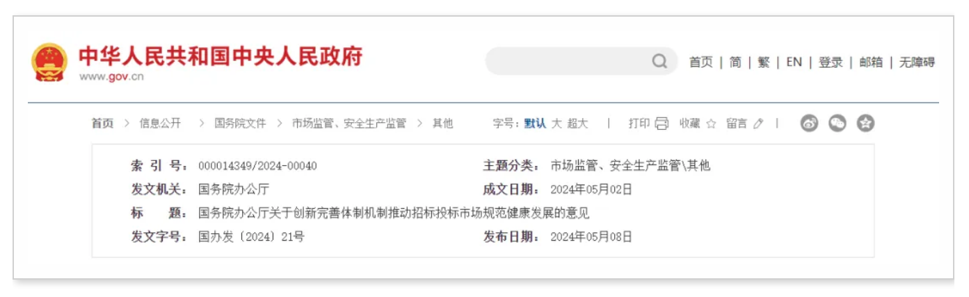 新政 | 重磅!招標(biāo)投標(biāo)領(lǐng)域綜合性改革文件出臺!  國務(wù)院辦公廳關(guān)于創(chuàng)新完善體制機(jī)制推動招標(biāo)投標(biāo)市場規(guī)范健康發(fā)展的意見