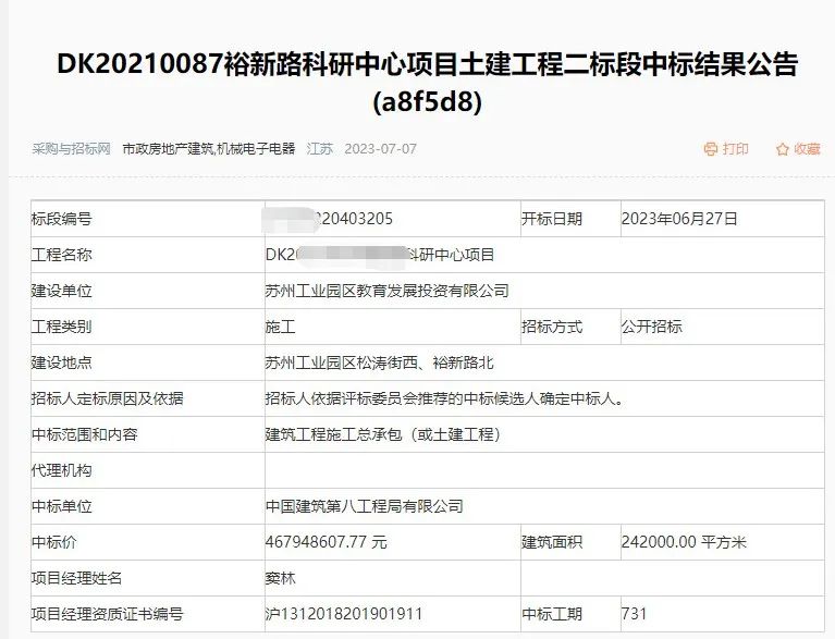 目前,項目已完成招標,并于7月7日發(fā)布了相應的中標結(jié)果公告。